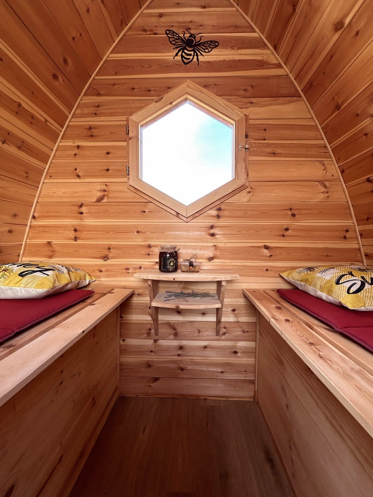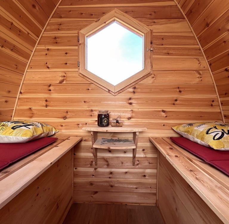 La sauna utiliza el calor suave generado por la actividad de las colmenas para relajar el cuerpo. La experiencia en la sauna de abejas es multisensorial, incluyendo aromas, sonidos y vibraciones sutiles de las abejas.